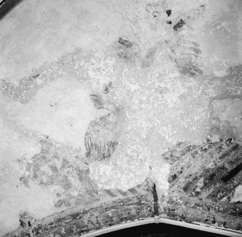 - op het oostelijke gewelfvlak van de zevende travee, boven de gordelboog