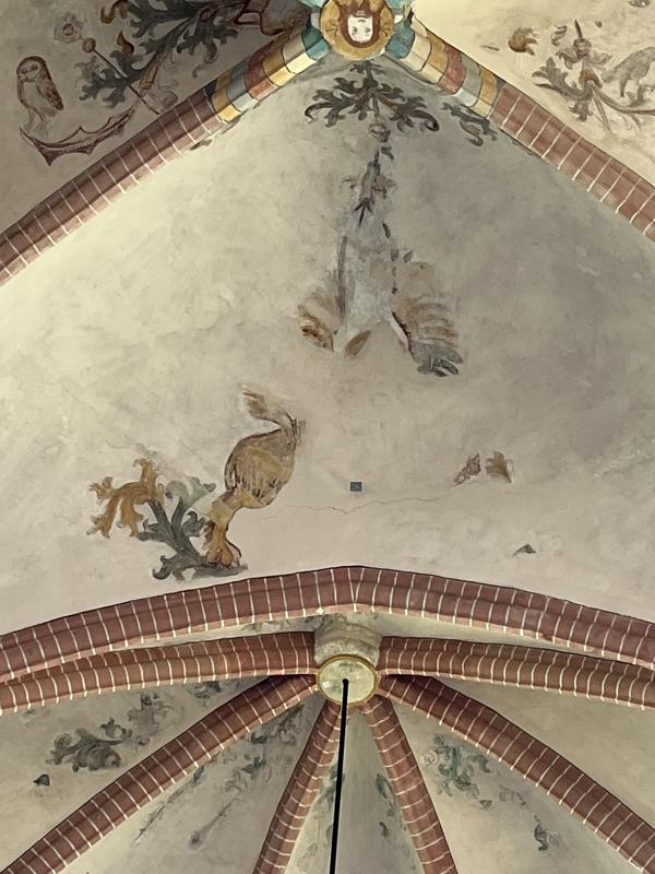 Eén van de vier symbolen van de evangelisten: van Marcus, de leeuw zijn slechts de achterpoten op het oostelijke gewelfvlak te zien. De ledematen van het dier zijn geschilderd in een bruine oker. Ook de leeuw is geplaatst op een achtergrond van plantenmotieven in groen en bruine oker.