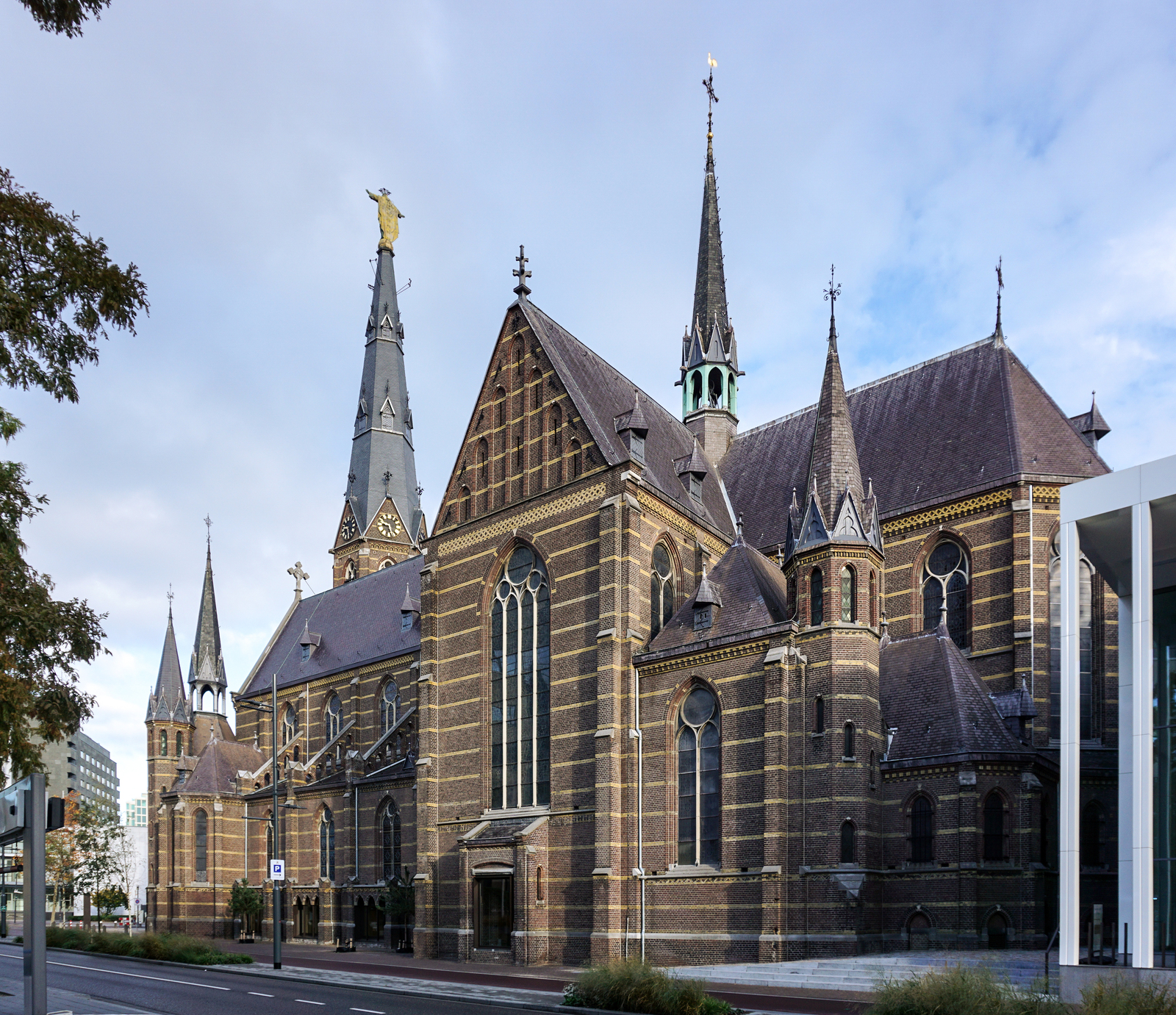 Driebeukige neogotische kruiskerk uit 1897-'98 naar plannen van P .J. Bekkers en