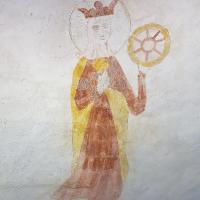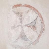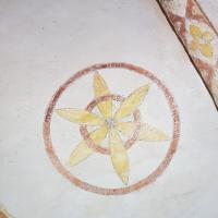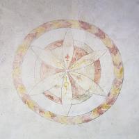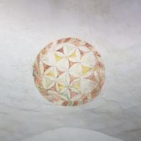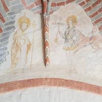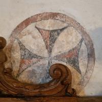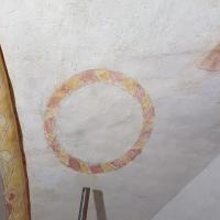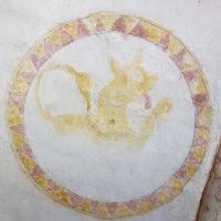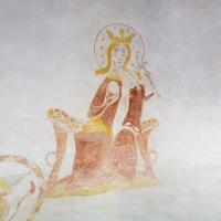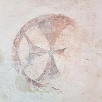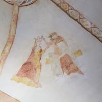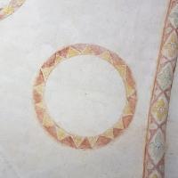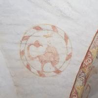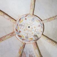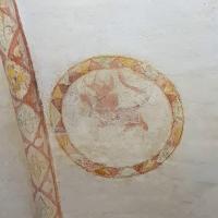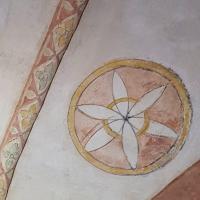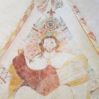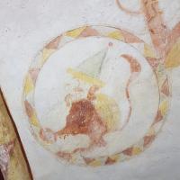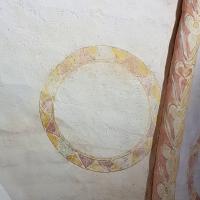 - nl Beschildering Ca. 1250 ornamentale gewelfbeschildering met figurale elementen (1-2), 2de helft 14de eeuw figurale gewelfbeschildering (3-5, 7), 2de helft 15de eeuw nieuwe figurale beschildering (7-8). Bij restauratie 1949-1950 vooral de Maiestas Domini sterk aangevuld. (bron:Q122982902)