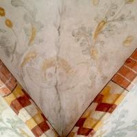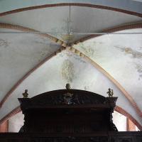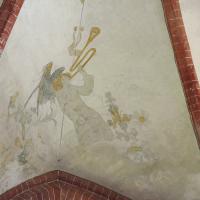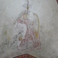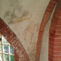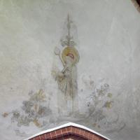 nl Ca. 1250 vlechtwerkverbanden op gewelven (niet gehandhaafd). Ca. 1300 Catharina van Alexandrie (1); op westwand schip draak (niet in het zicht gelaten). Ca. 1450 in koorsluiting ranken bij geboorte gewelven, alsmede twee wijdingskruisen op de koorwanden Ca. 1530 baksteenschildering ribben, bogen, schalken en dagkanten, manchetten bij sluitstenen; op gewelven koortravee en koorsluiting figurale schilderingen (2-3). In 1935 deel schilderingen ontdekt en weer overgewit. (bron:Q122982902)