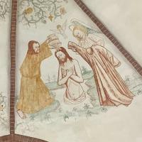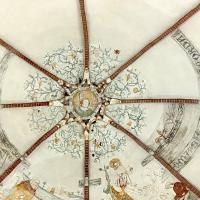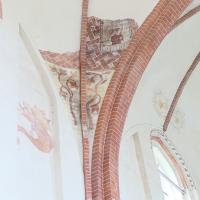 nl Ca. 1350: wit gepleisterde wanden met in koor en dwarspand figurale en ornamentale schilderingen, imitatie-baksteen en decoratieve band op gewelven, ornamentale beschildering bogen, kapitelen en ribben (1-8); ca. 1488 figurale en ornamentale beschildering van het dichtgezette venster van de koorsluiting, gewelven koor, schip en zuidwand zuiderdwarspand (9-14); ca. 1570 decoratie van het vieringgewelf en rondom het koorvenster (15); 1599 herstel vieringgewelf (16) op westelijk gewelf deel beschildering uit 1809 (17). Na gedeeltelijke ontdekking in 1908 verdere blootlegging en restauratie 1968-1974. (bron:Q122982902)
