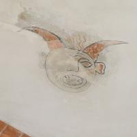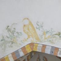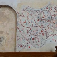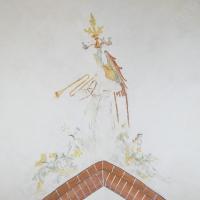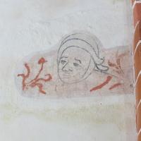 nl Ca. 1275: wanden rood met witte voegen, nissen wit gepleisterd, die in benedenzone met geschilderde omlijsting; gewelven met baksteen-imitatie en dambord-patronen; in en om sluitringen plantmotieven en gestileerde figuurtjes (1-4). In 1ste kwart 15de eeuw: kerk wit gepleisterd, rode ranken in schip, figurale schilderingen in nissen koor en schip, imitatie-baksteen op ribben, bogen en wandpijlers (5-7). Na bouw nieuwe koor (2de helft 15de eeuw) beschildering met bloemranken in koor en schip; nu ook in koor baksteen-imitatie op ribben, bogen en wandpijlers; Laatste Oordeel op noordwand schip, waartoe een venster werd dichtgemetseld; heiligenfiguren in de nissen overgeschilderd (8-9). Ca. 1510-1520 op koorgewelf figuratieve en florale be- schildering (10). Ca. 1570 Laatste Oordeel vernieuwd (11), nieuwe architectuurpolychromie met natuursteen-imitatie niet gehandhaafd), enkele karikaturale voorstellingen (12-14). In 1585 bak- steen-imitatie en opschrift op vernieuwde gordelboog (niet gehandhaafd). (bron:Q122982902)
