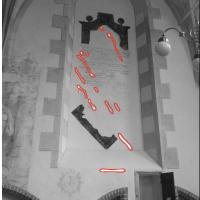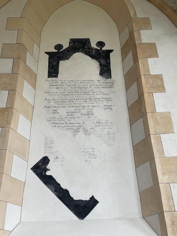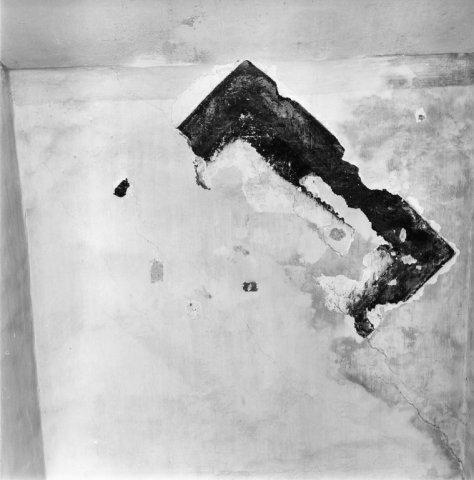 Objectenmet "muurschildering id:13 commemoratieve opschriften tegen achtergrond van twee monochroom geschilderde rouwborden"