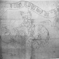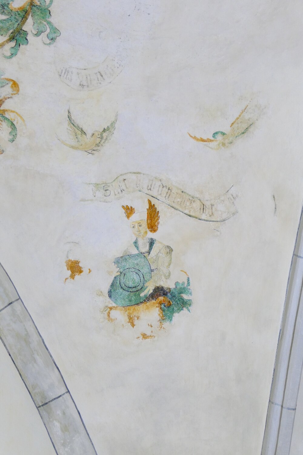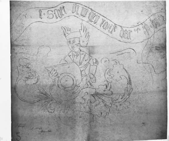 Objectenmet "muurschildering id:10b ongeïdentifeerde scène 'fragment figuur met banderol en vogels' "