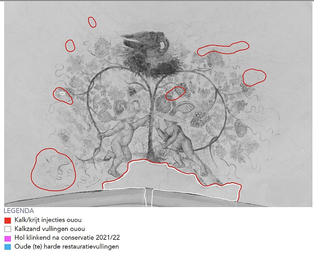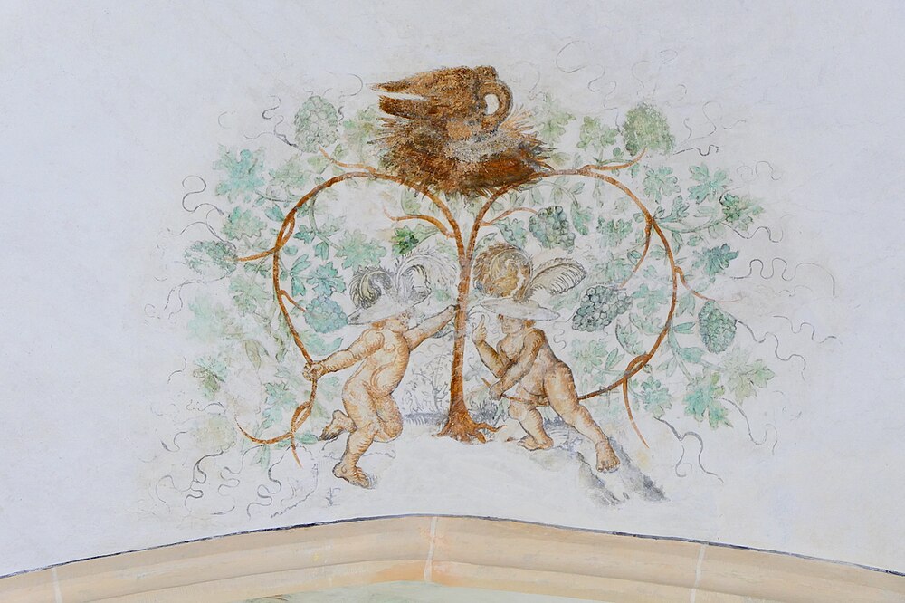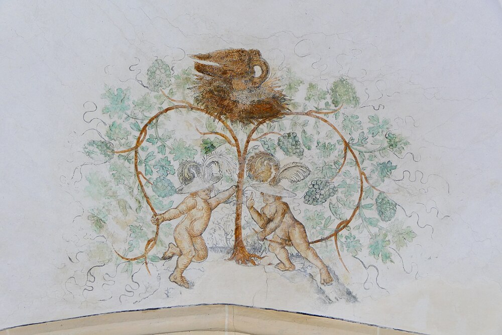 3 pelikaan, putti met wijnranken