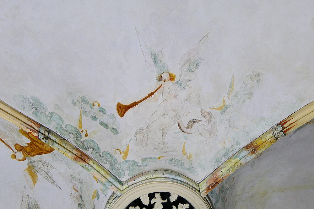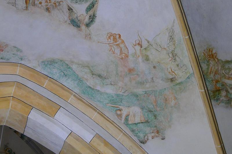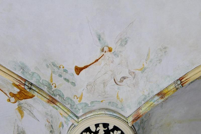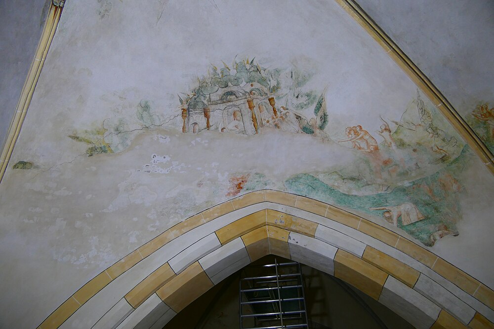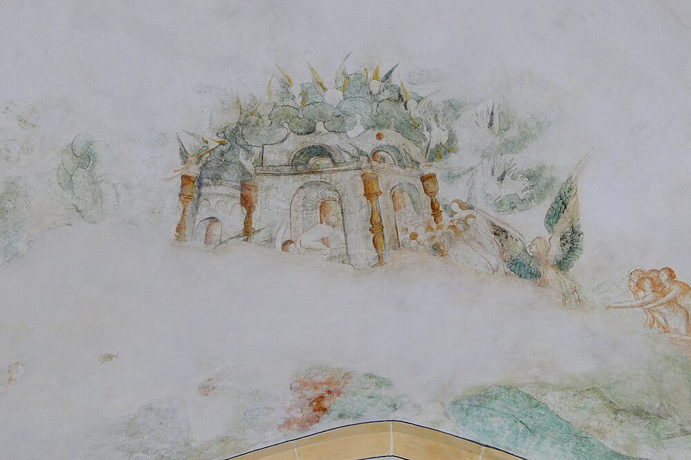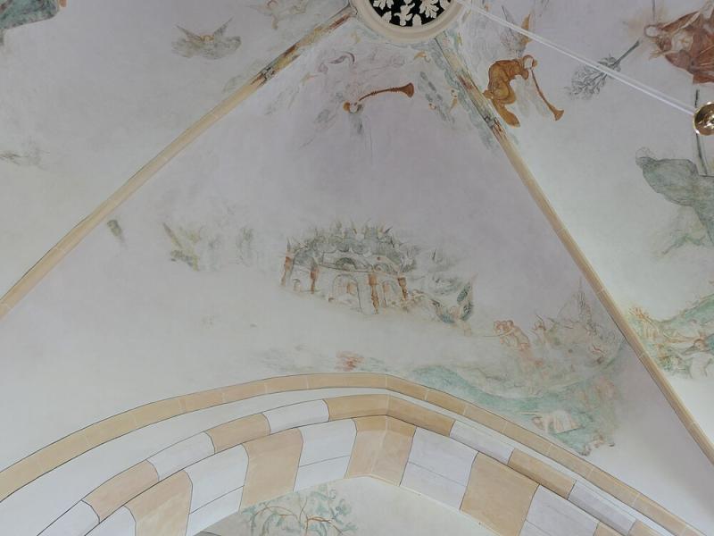 Objectenmet "muurschildering id:7 hemelgebouw met renaissancistische balusters en rustica-blokken "