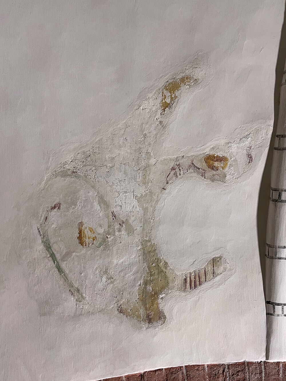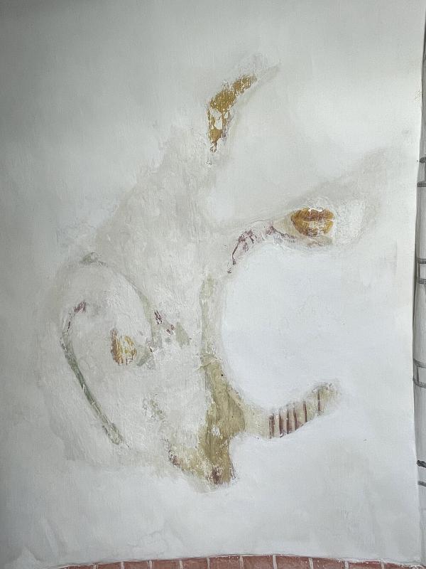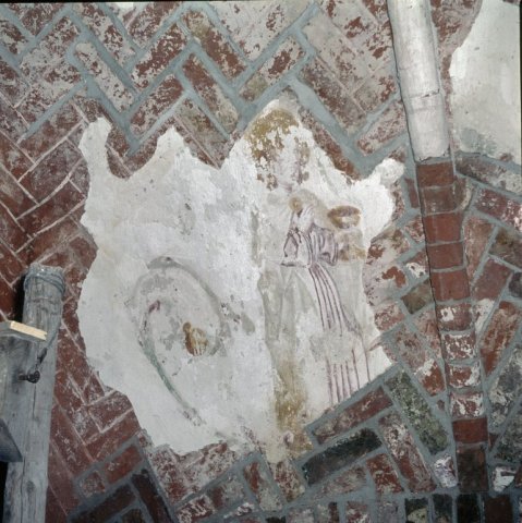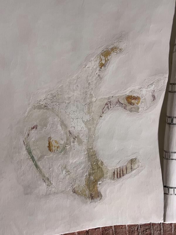 Objectenmet "muurschildering id:5a Fragment van Johannes de evangelist en fragmenten van een onleesbaar geworden tekst"