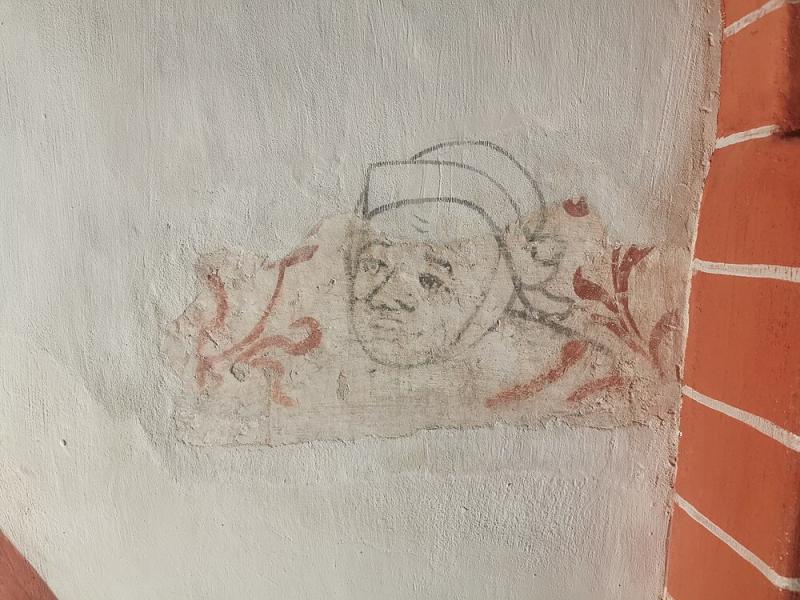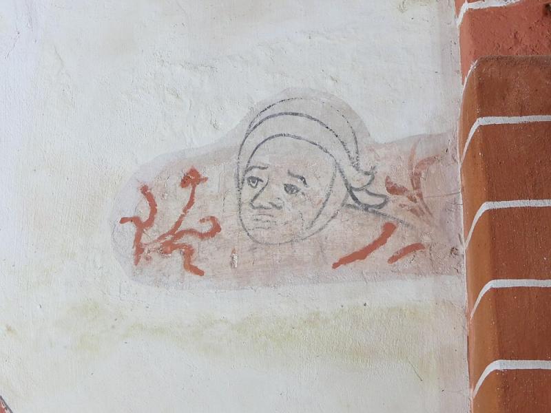 derde travee uit het westen; noordwand ; rechts boven zijdeur