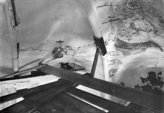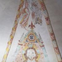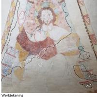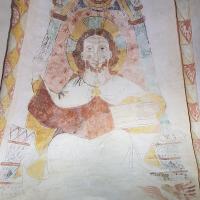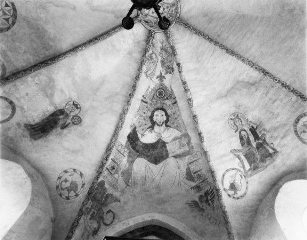 Objectenmet "muurschildering id:3 Maiestas Domini; de namen van de vier evangelisten slechts fragmentarisch bewaard gebleven."
