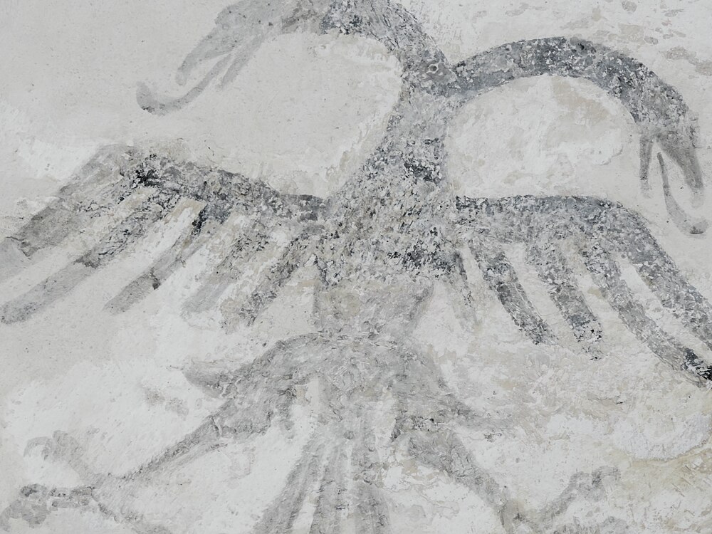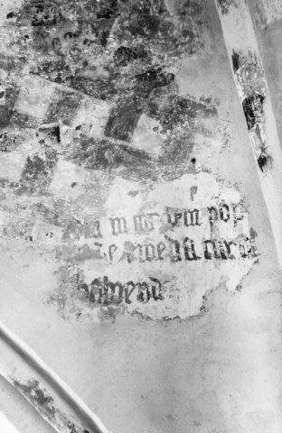 Objectenmet "muurschildering id:1b Dubbele zwarte adelaar + opschrift [ANNO DOMIN]I MCCCCLXII POP[TATUS] DE EMEDA CURA[TUS] […] BEND […]"