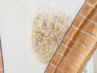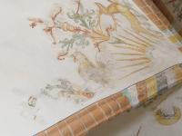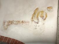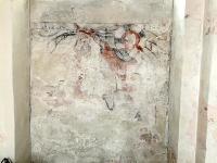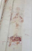 10 Cartouche met tekst over het Laatste Oordeel geschilderd 10 Cartouche met tekst over het Laatste Oordeel geschilderd 2e periode geschilderd over onderliggende kalklaag 1e periode. Temperaverf met eventuele toevoeging van lijnolie. -