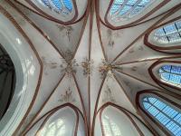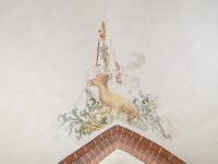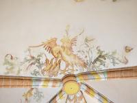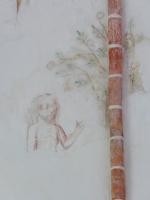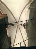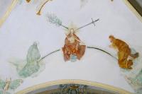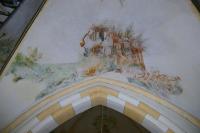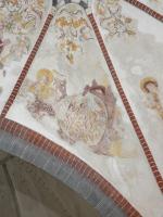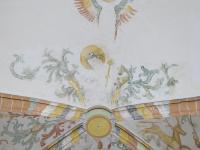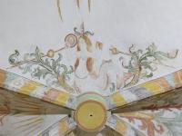 17 Bovenste deel van het overigens op hout geschilderde gordijn achter het orgel. 17 Bovenste deel van het overigens op hout geschilderde gordijn achter het orgel; op westelijk gewelf deel beschildering uit 1809 -
