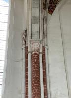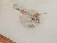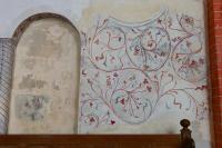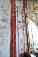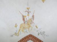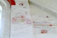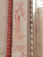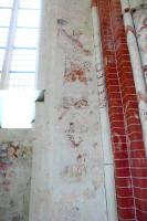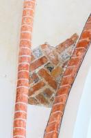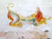 5a haas en sirene; in een nis in de zuidmuur Christophorus (sterk bijgewerkt)wijnranken; blokornament ribben; wijdingskruis, bedekt door jonger kruis, zie nr. 14. 5a haas en sirene; in een nis in de zuidmuur Christophorus, wijnranken; blokornament ribben; wijdingskruis, bedekt door jonger kruis, zie nr. 14; Christophorus (sterk bijgewerkt) -