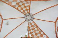 2 gewelfvelden met rode en witte vlakken afgewisseld met wit gepleisterde velden; 2 gewelfvelden met rode en witte vlakken afgewisseld met wit gepleisterde velden; -