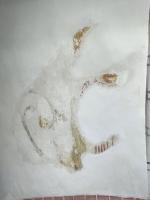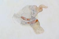 5b Fragmenten van een onleesbaar geworden tekst en gevleugeld gehoornd figuur 5b Fragmenten van een onleesbaar geworden tekst en gevleugeld gehoornd figuur -