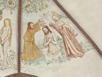3 Johannes de Doper 3 Johannes de Doper; ca. 1500 nieuwe beschildering met figurale en florale elementen op witte pleister; bij de restauratie 1977-1979 zijn op het vieringgewelf voornamelijk figurale elementen uit de eerste periode gehandhaafd -