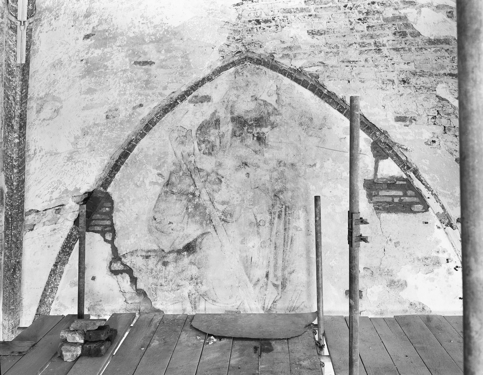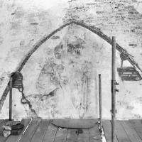 Onder de schildering bleek bij de restauratie een andere voorstelling gestaan te hebben (rapport Otter).