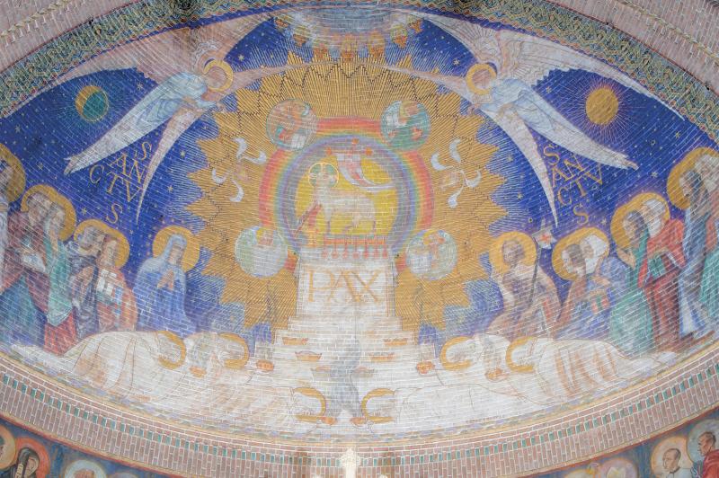 De aanbidding van het Lam Gods in de kalot van de apsis