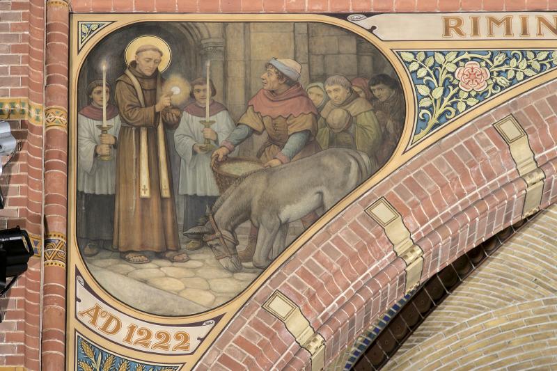 - Muurschilderingen in Agatha, Lisse; Antonius en de ezel die zelfs na een week honger eerder voor de hostie knielt dan dat hij gaat eten, in de koortravee van de Agathakerk. Het is niet zeker welke broer dit gemaakt heeft. [techniek: olieverf] [staat: Gerestaureerd 1999-2002]