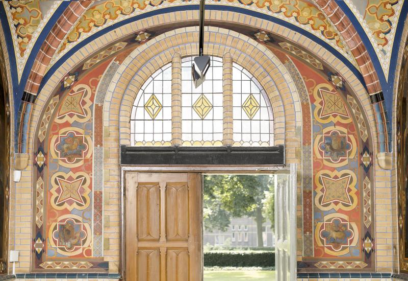 Geometrische ornamenten rond deur in Atrium meisjeskapel