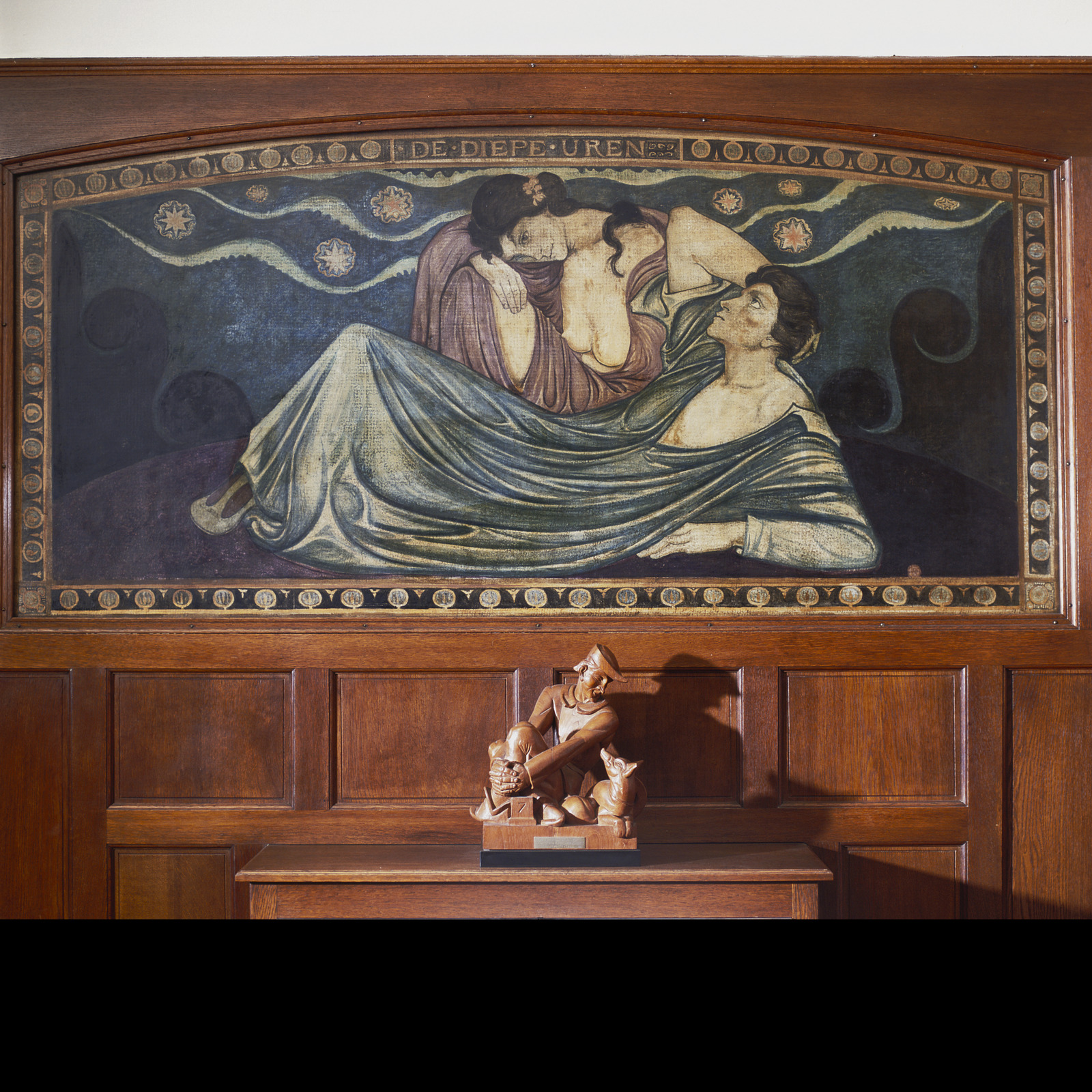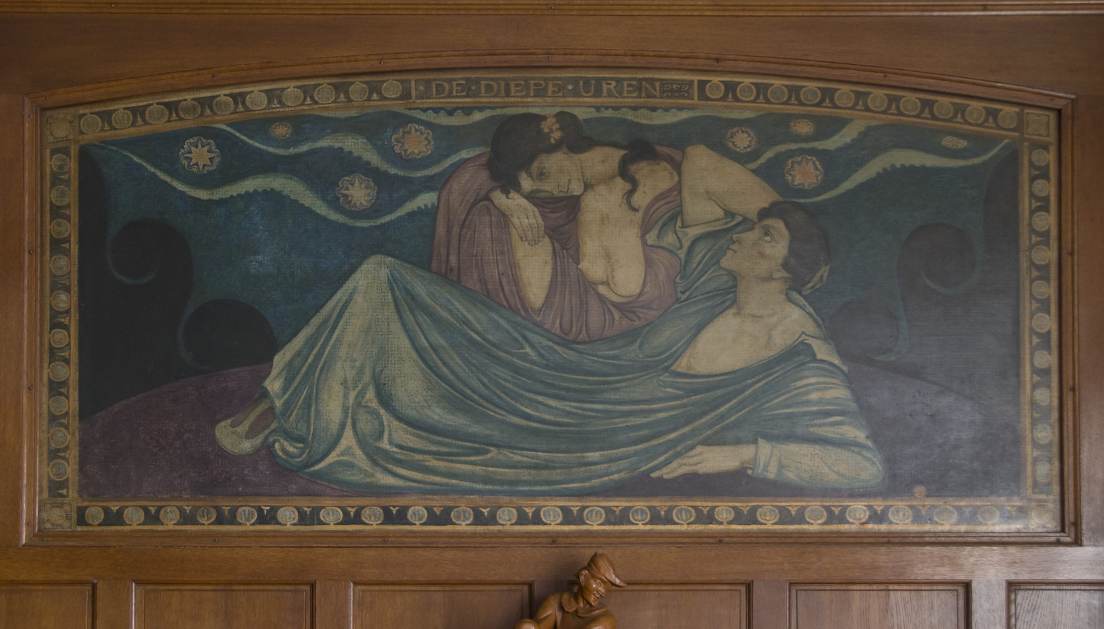 - Muurschildering in Algemene Nederlandsche Diamantbewerkers Bond (nu De Burcht), Amsterdam. De schildering toont een rustende man en vrouw.