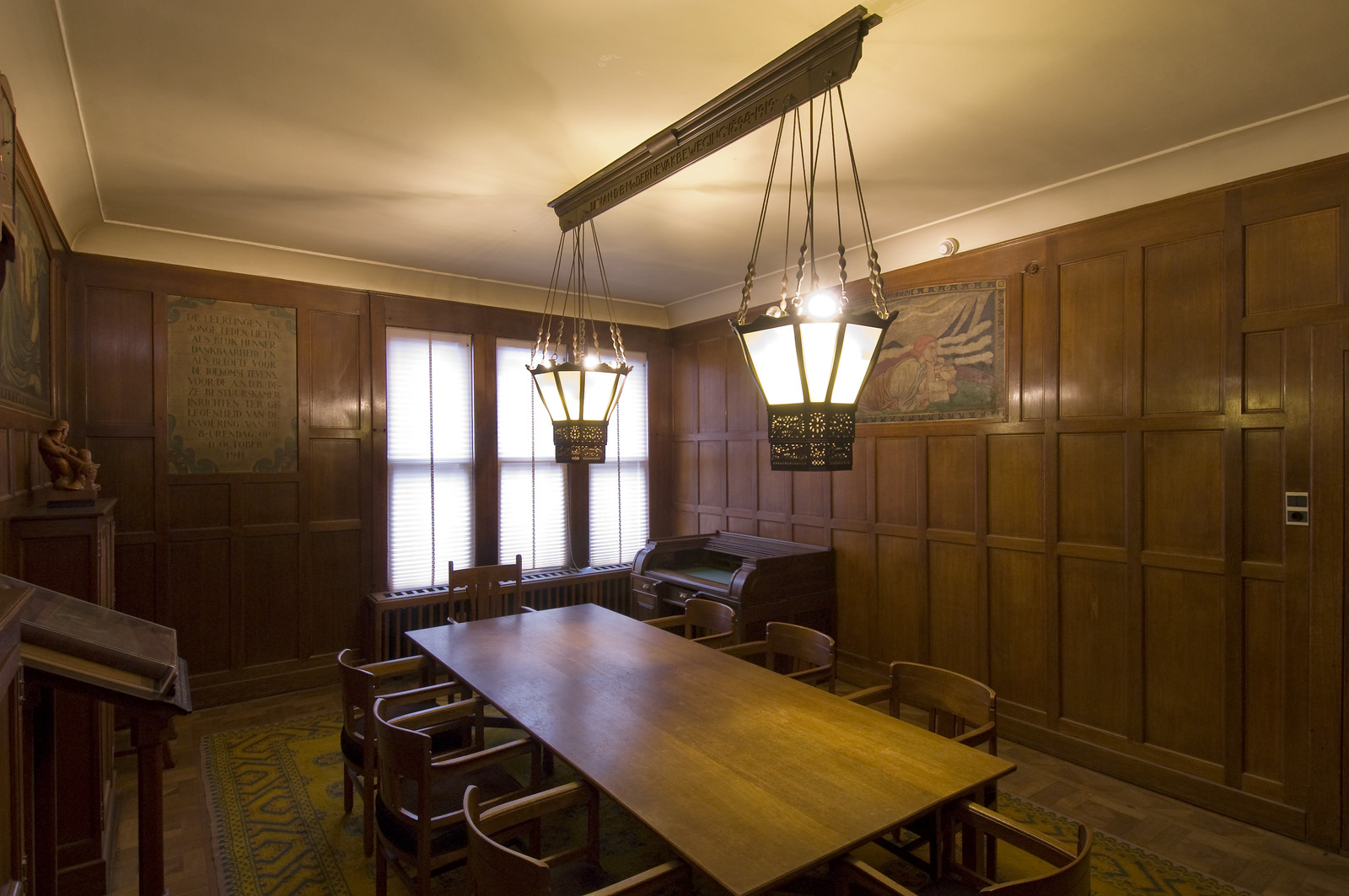 - Muurschildering in Algemene Nederlandsche Diamantbewerkers Bond (nu De Burcht), Amsterdam. De schildering toont een peinzende figuur met boek.