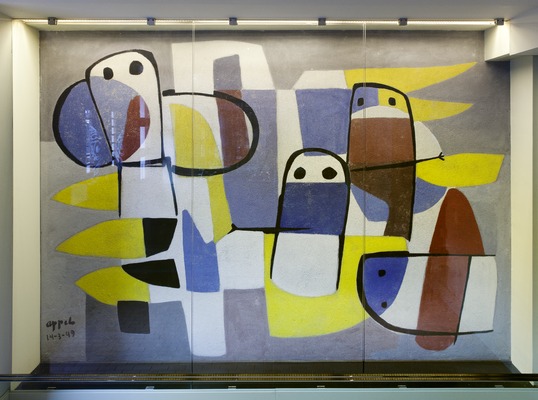 Nog hetzelfde jaar wordt het werk afgedekt met een voorzetwand. Pas als het stadhuis in 1988 verhuist naar de Stopera aan het Waterlooplein, komt de schildering weer tevoorschijn. Het is tegenwoordig een publiekstrekker in de brasserie van Sofitel Hotel The Grand, dat Appels schildering in oude glorie heeft laten herstellen. De muurschildering zit nu achter een glazen schuifwand.