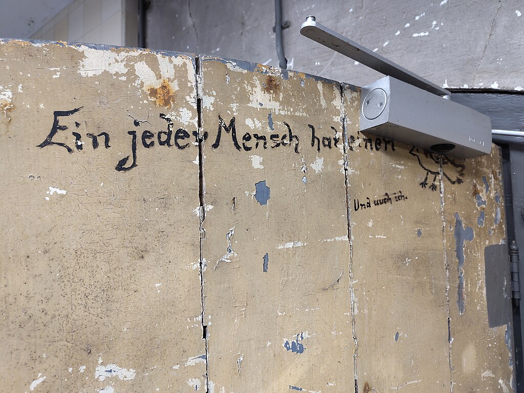 Geen muurschildering maar vermeldenswaardig. Aan de binnenkant van een slaapvertrek van de officieren (oude plattegrond nummer 94) (nu de keuken) is op de houten deur bovenaan een tekst en een vogel geschilderd: Ein jeder Mensch hat einen fogel (die is getekend) und auch ich.