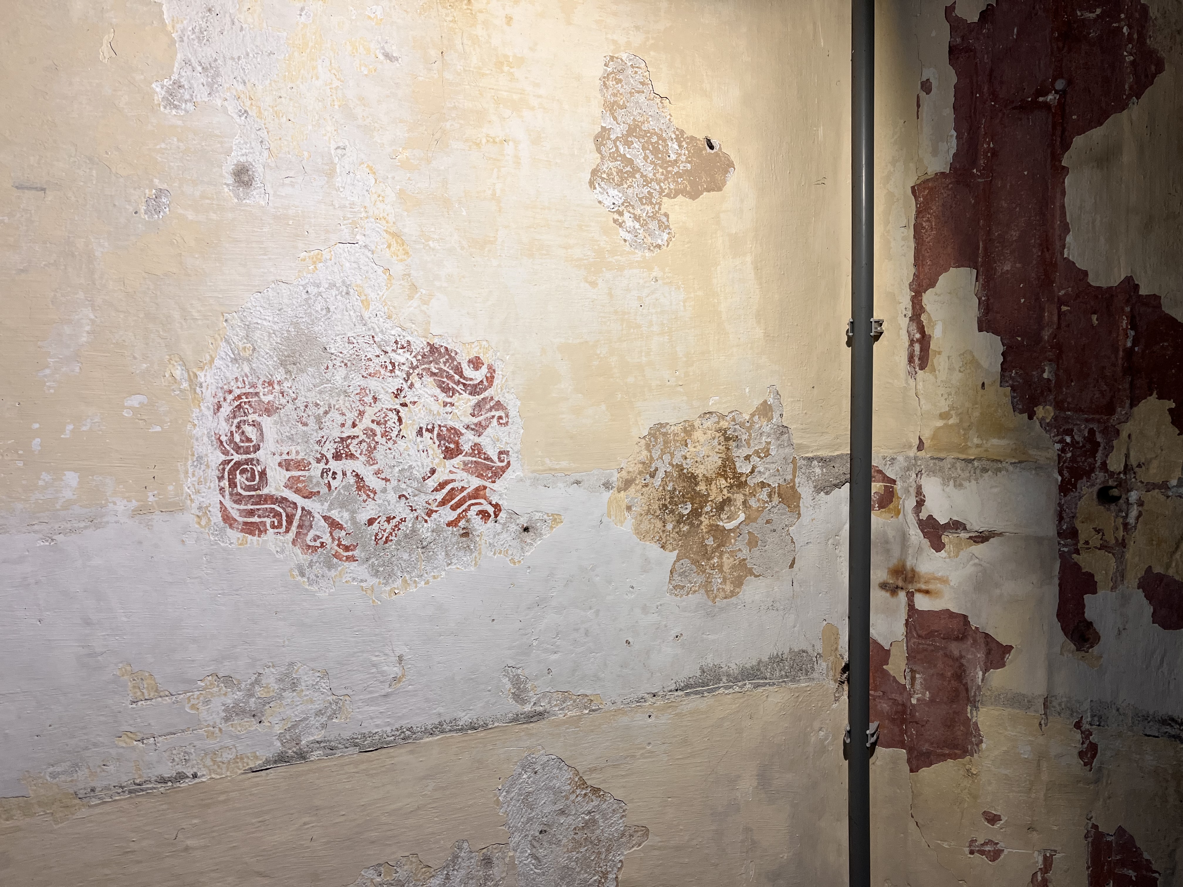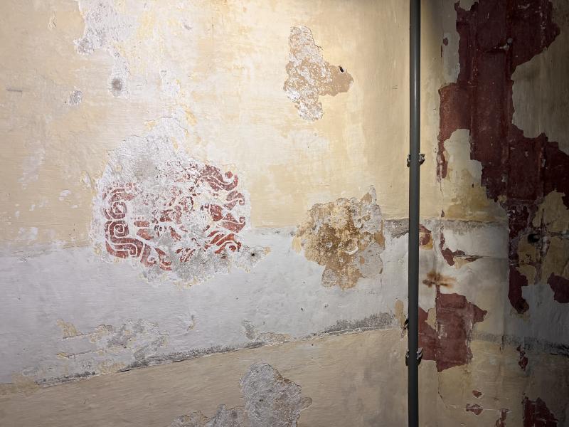 - In bemanningsverblijf 'G Onderofficieren' in rode verf aangebrachte schildering, waarschijnlijk aangebracht met sjabloon. Mogelijk een leeuw voorstellend.