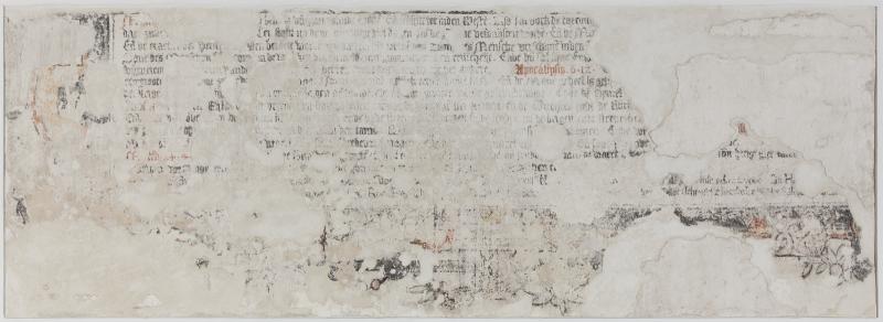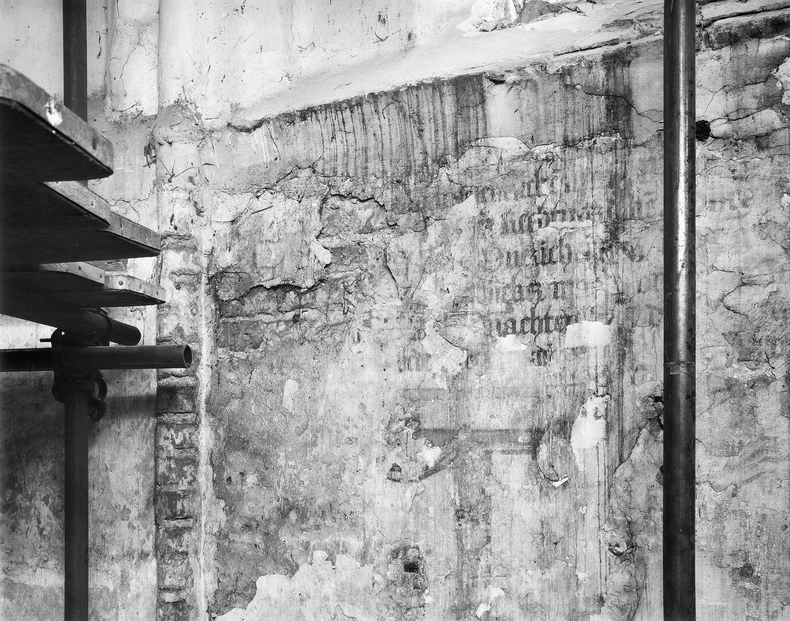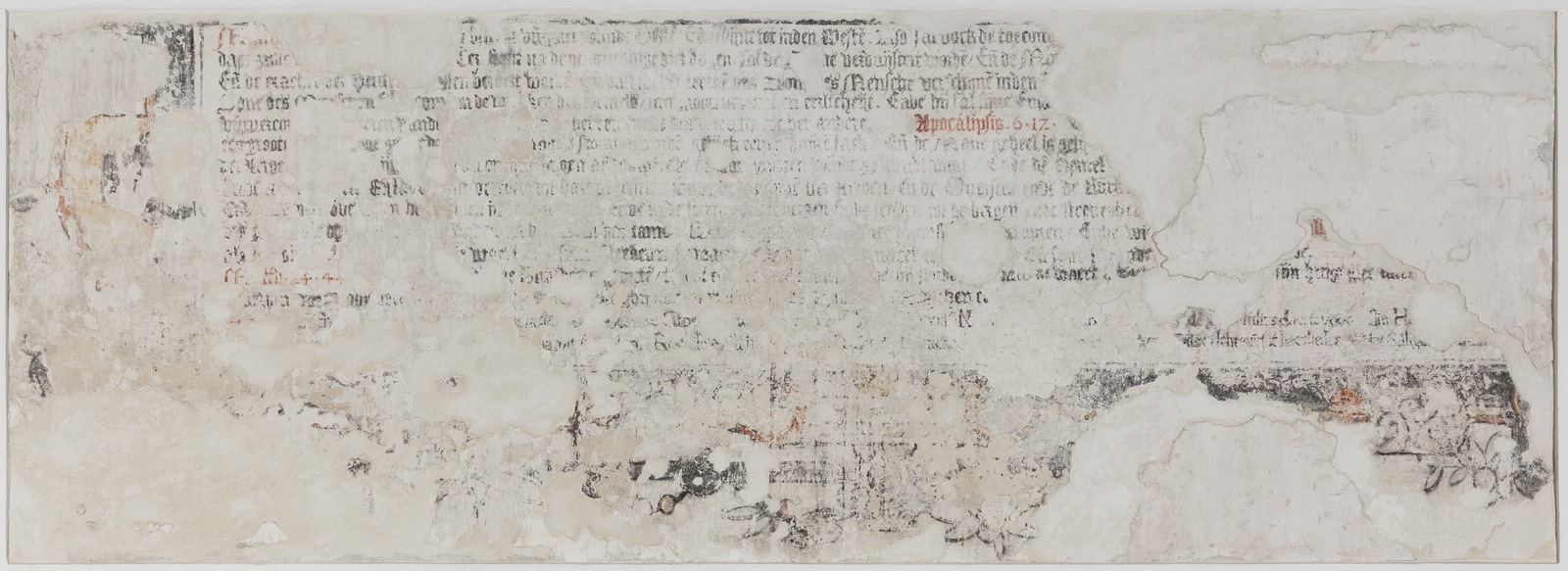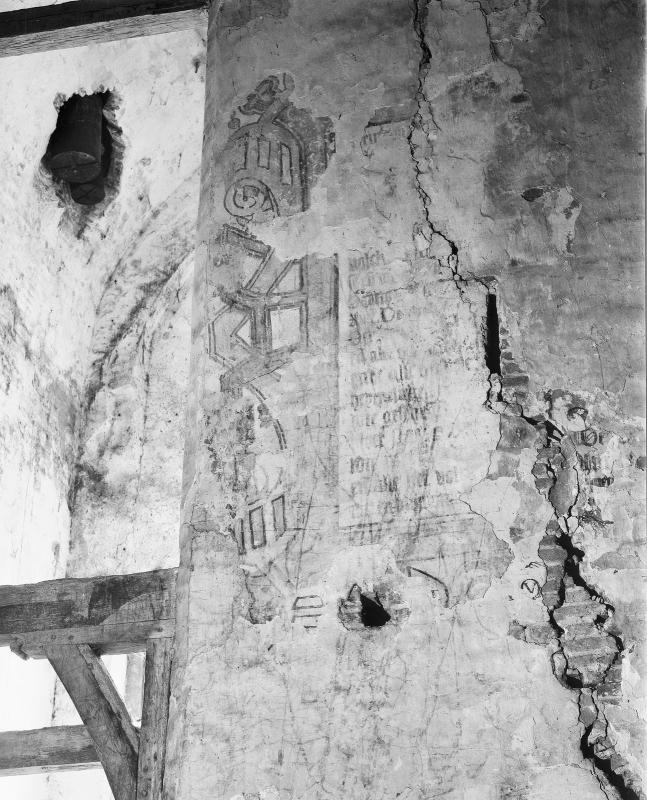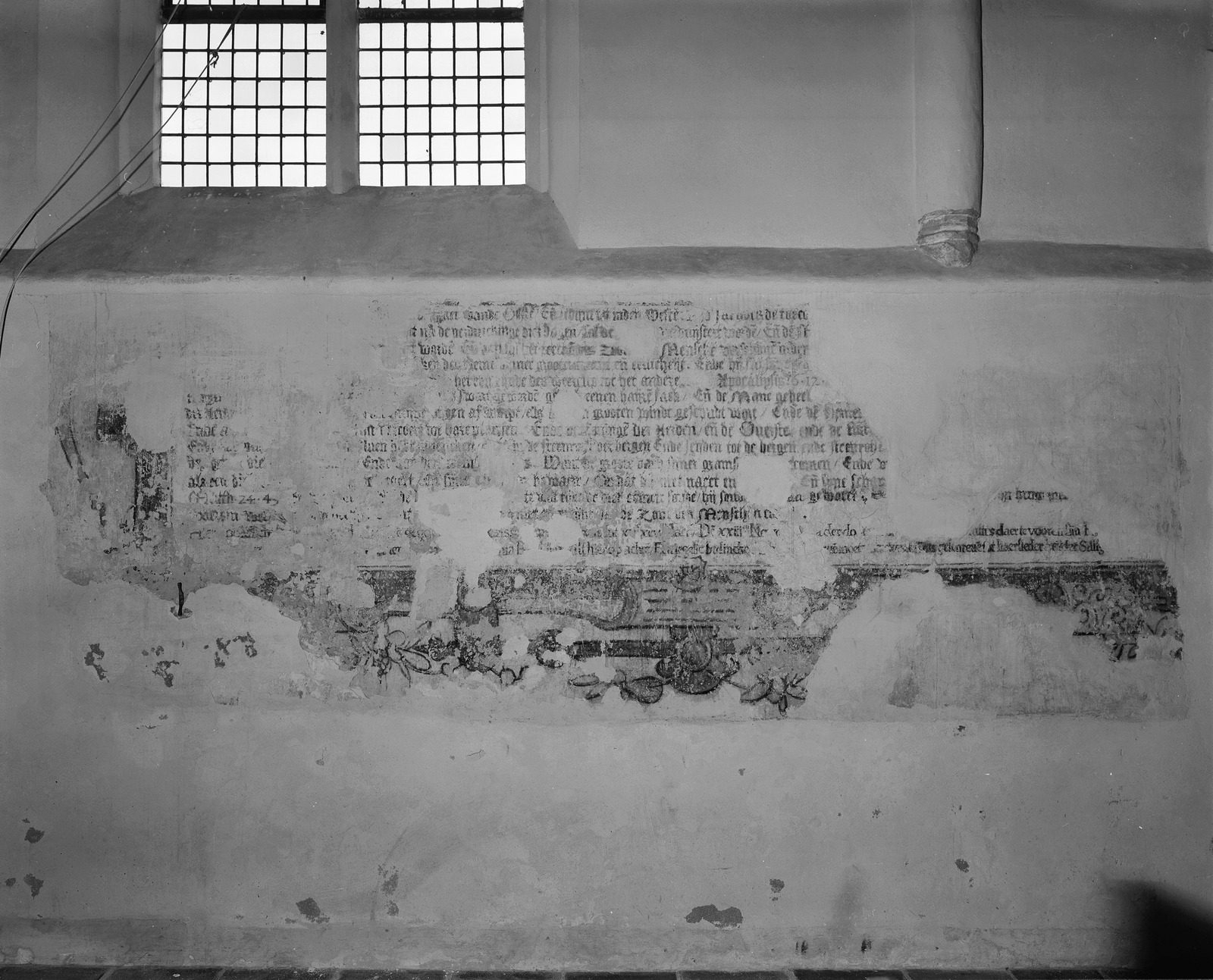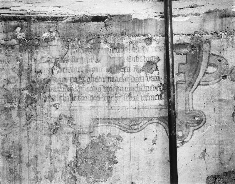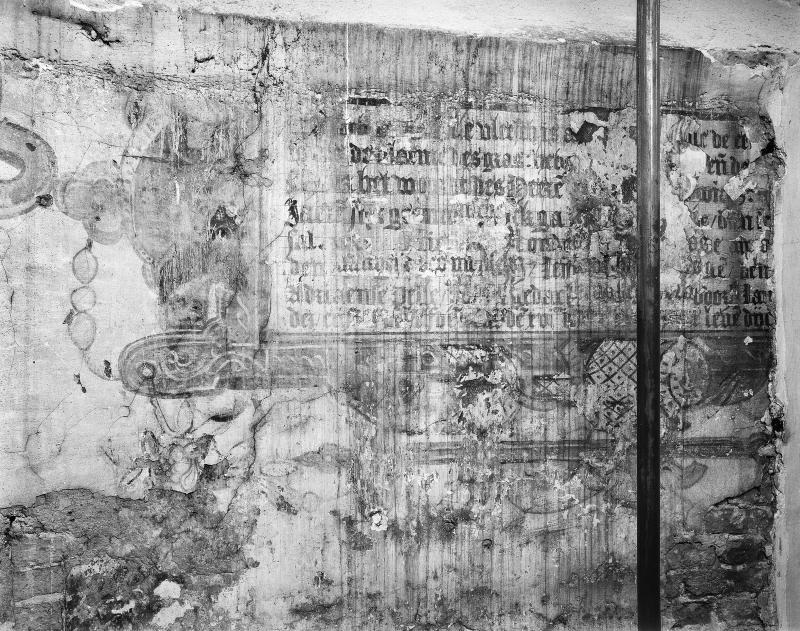 - Cartouches met diverse bijbelteksten. In de zestiende eeuw was het gebruikelijk om teksten op de muur te schilderen.
