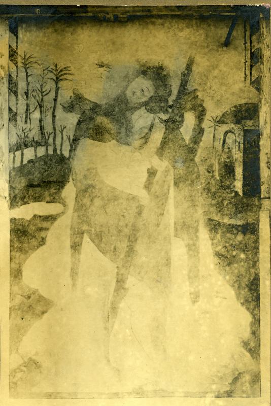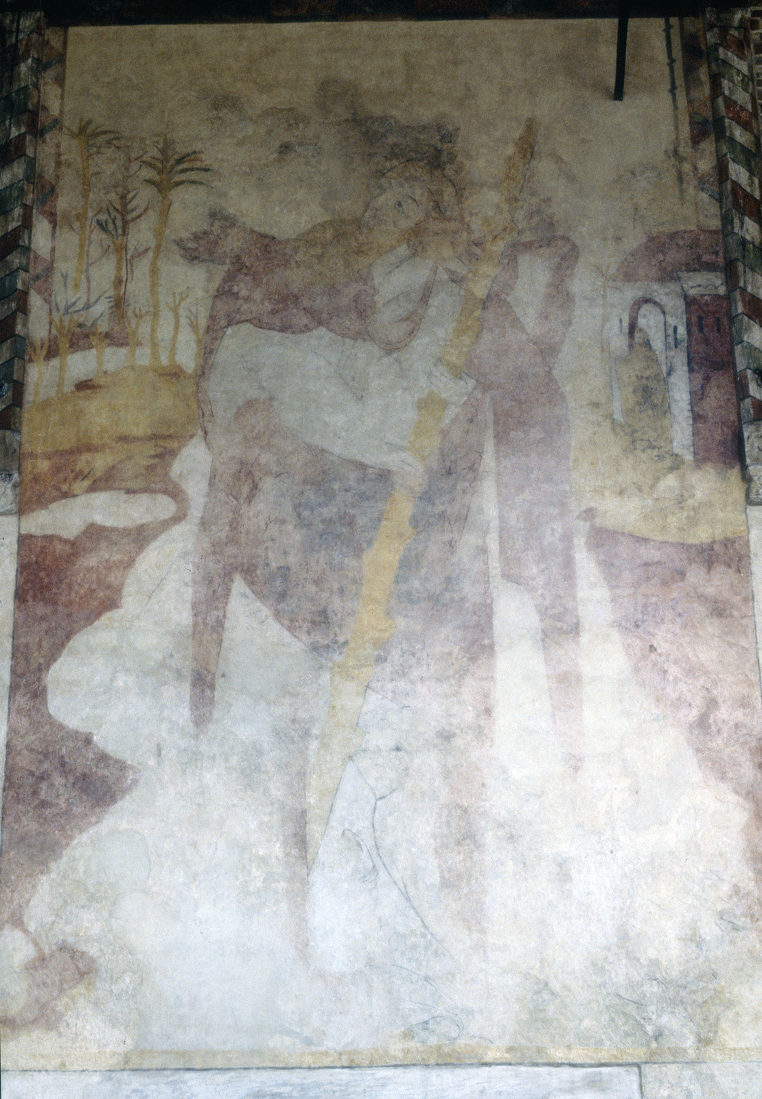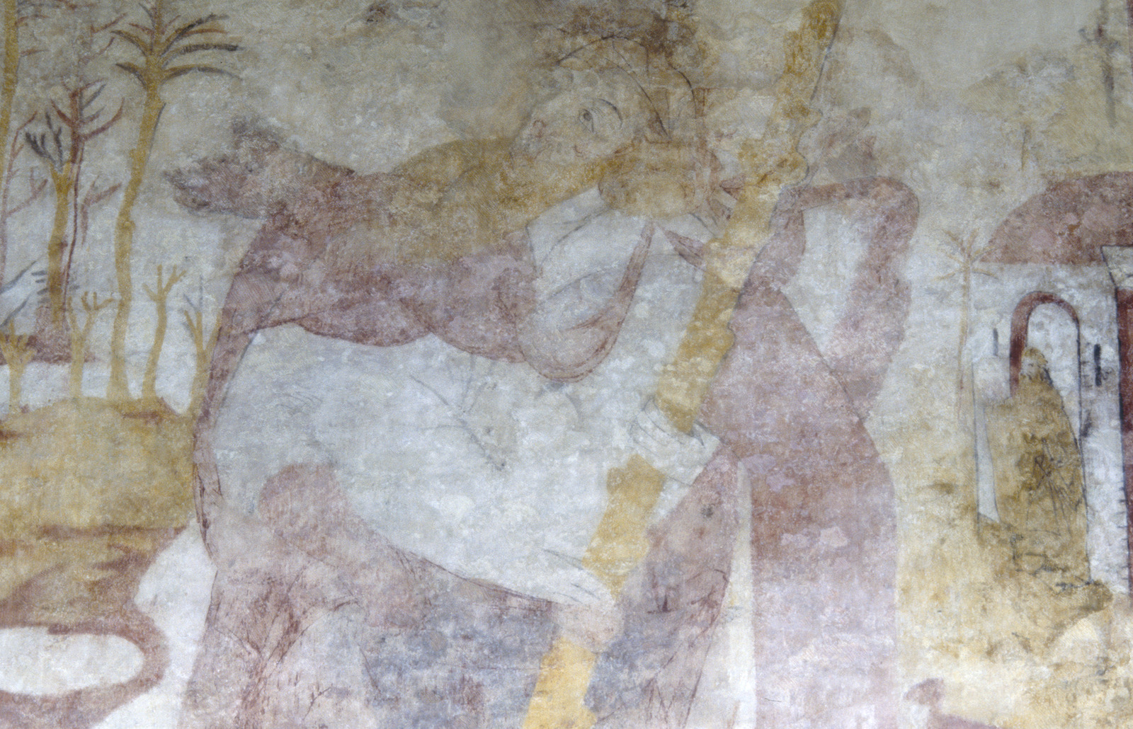 - 15de eeuwse muurschildering van de Heilige Christoffel of Christophorus tegen de noordwand van het schip