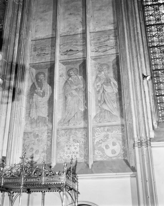 Muurschildering van Simon, Jacobus en Philippus in de middelste straalkapel