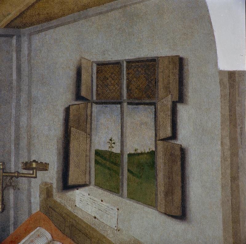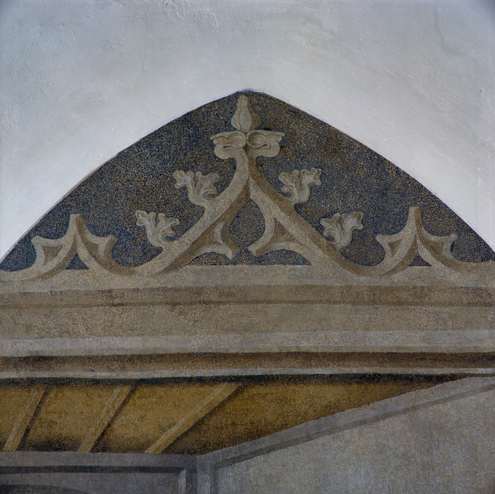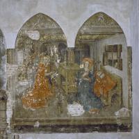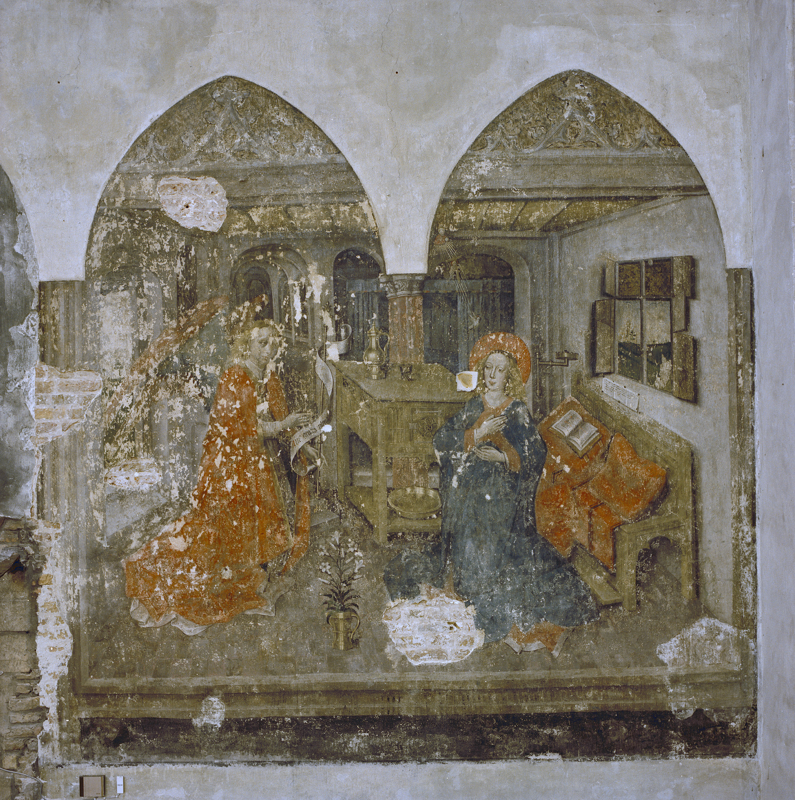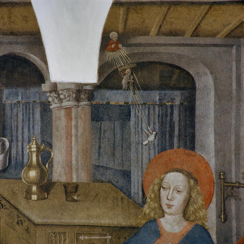 Noorder transept, noordmuur, detail muurschildering de Annuciatie