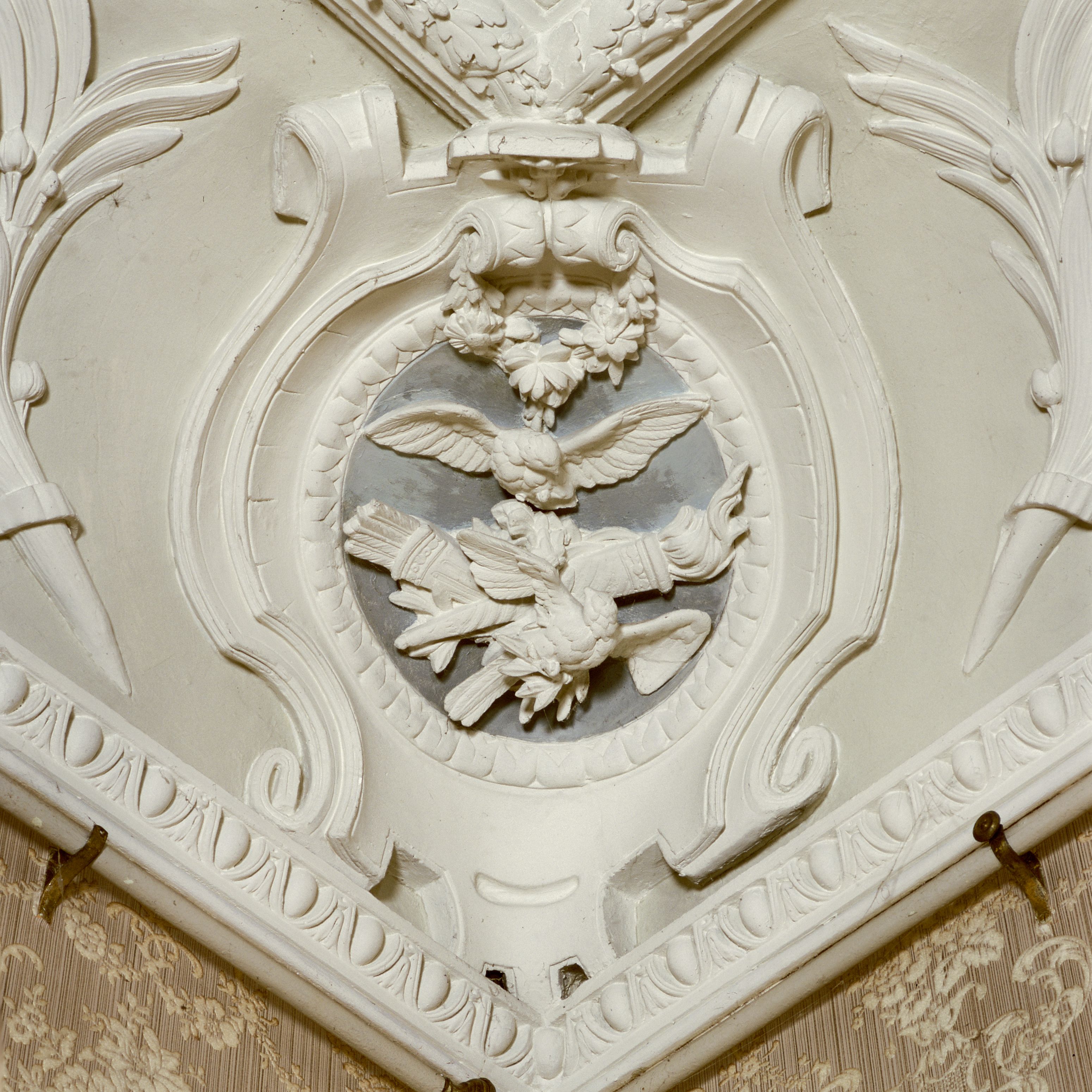 - nl Stucornament met in de cartouche een verwijzing naar de liefde