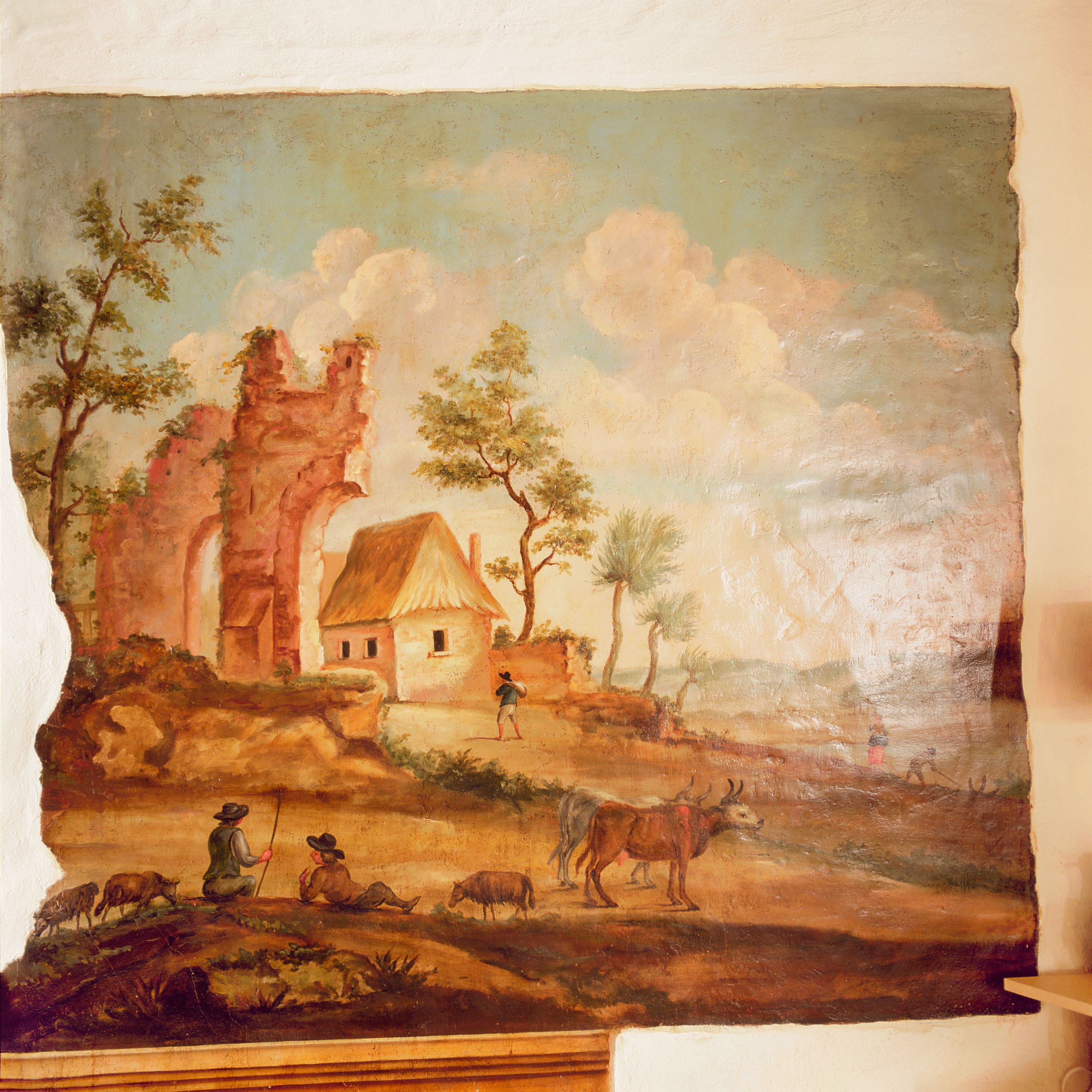 Landschap met ruïne en herders