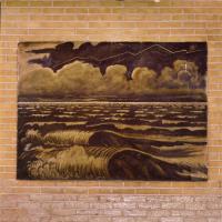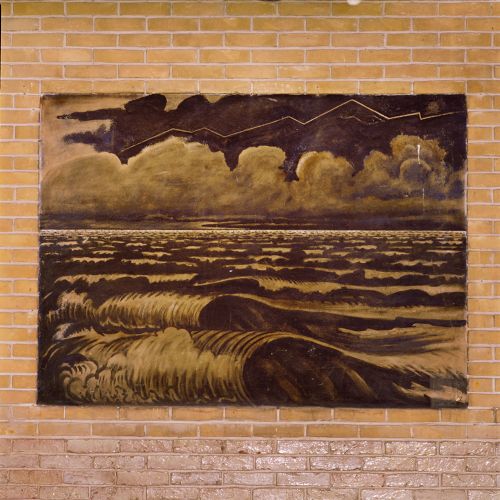 De elementen water en vuur. Stucwerk, olieverf.
