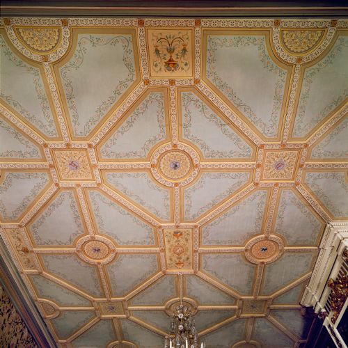 - nl Met ornamenten beschilderd stucplafond