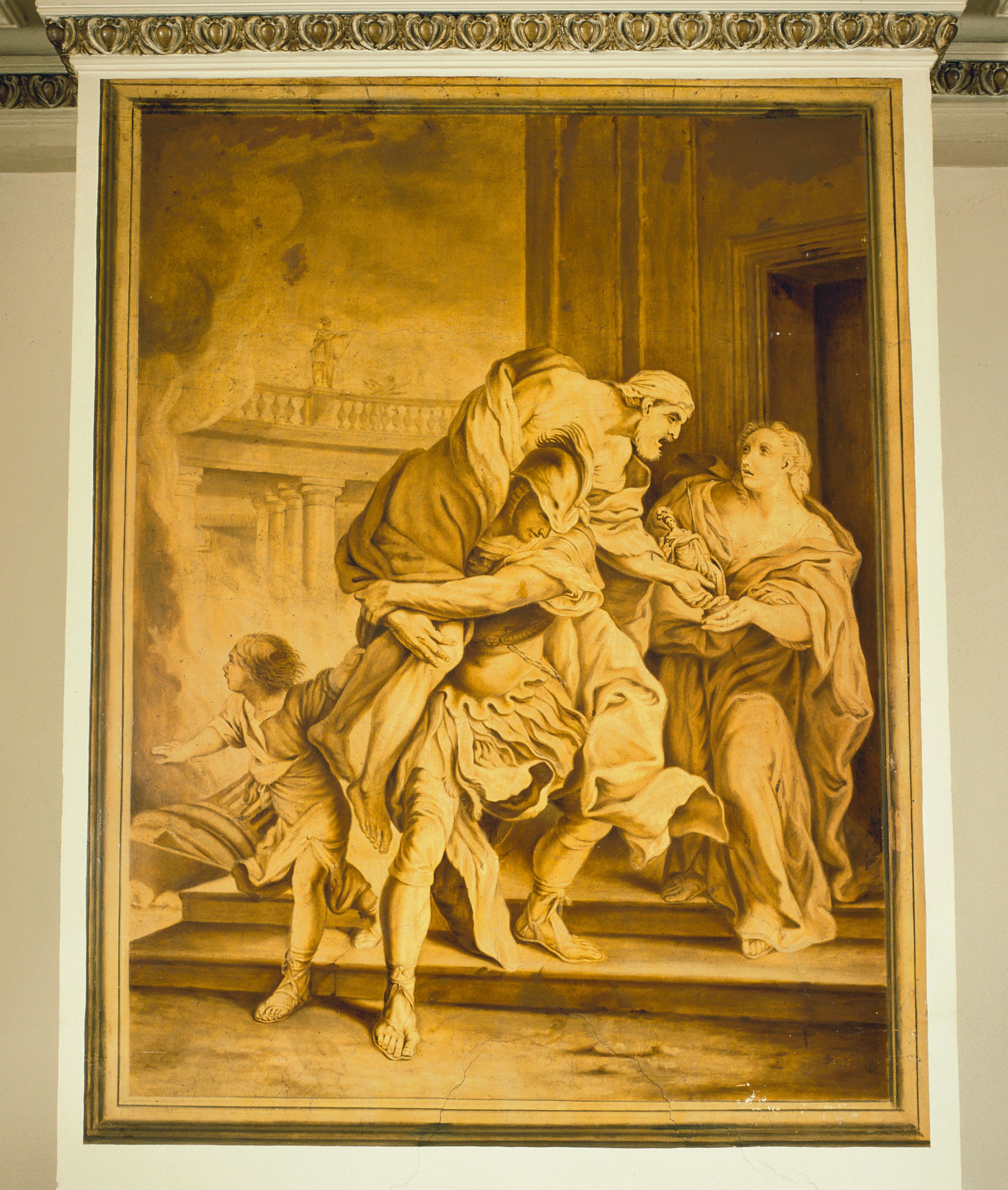 Aeneas redt zijn vader Anchises uit het brandende Troje