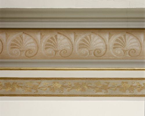Sierrand en koof met gesjabloneerd palmetmotief