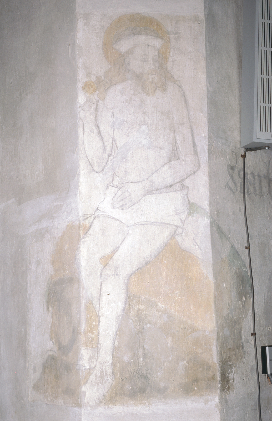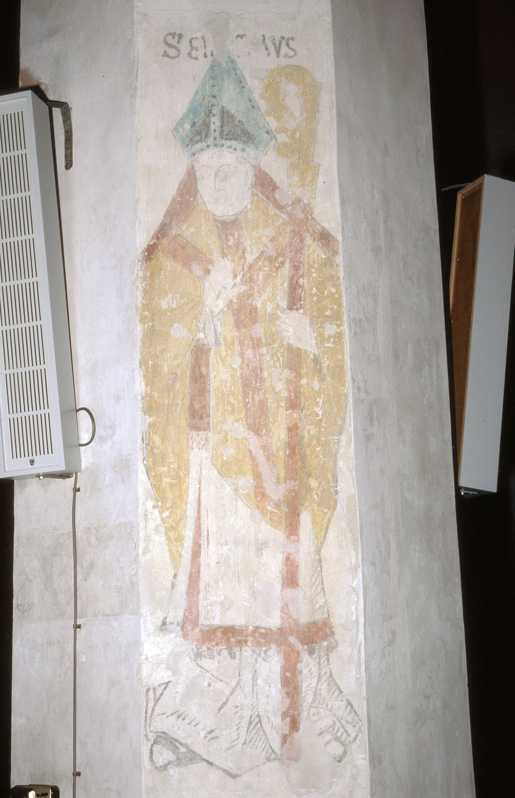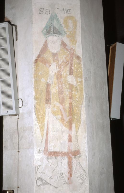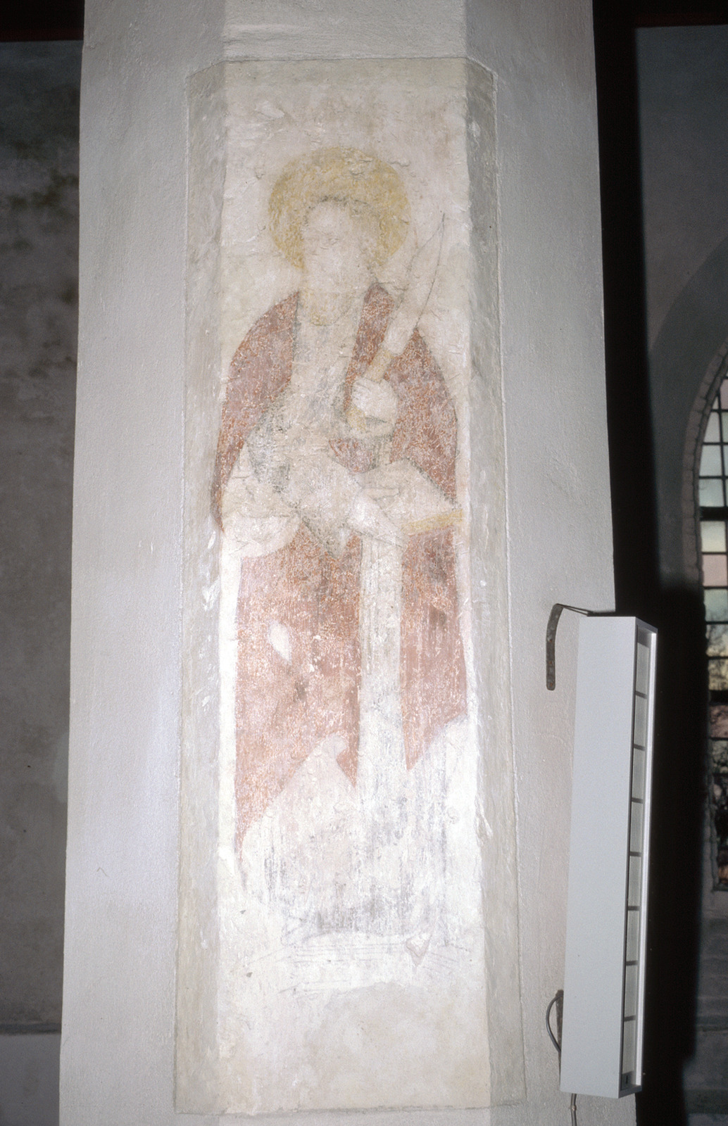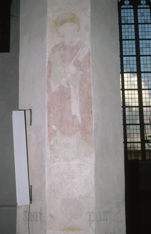 Muurschildering van de apostel H. Paulus op een van de pijlers