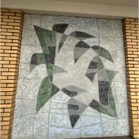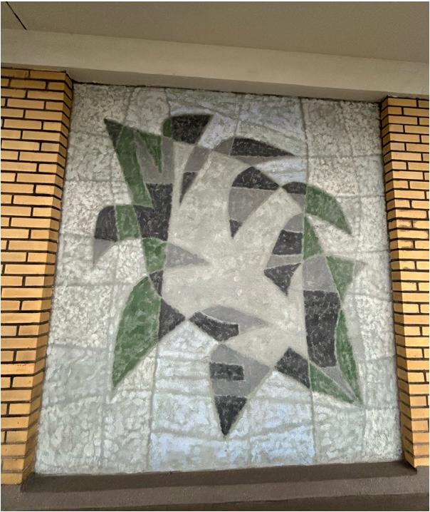 Op elke verdieping van het gebouw, buiten op de galerij, is een muurschildering gemaakt. Deze begint op de eerste verdieping tot en met de negende verdieping. De muurschilderingen verbeelden 5 gestileerde vogels, lijkend op duiven, en 4 afbeeldingen van iets dat op een blad lijkt of ander soort geabstraheerd organisch element. Over de negen muurschilderingen zijn slechts deze twee verschillende composities te zien, die elkaar elke verdiepingen afwisselen en steeds gespiegeld worden.