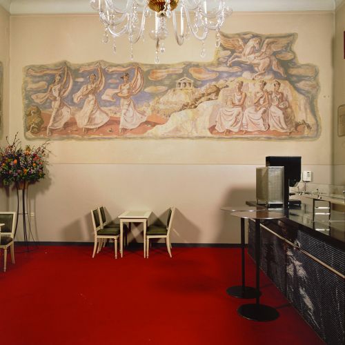 - gebouw waarin muurschildering zich bevindt