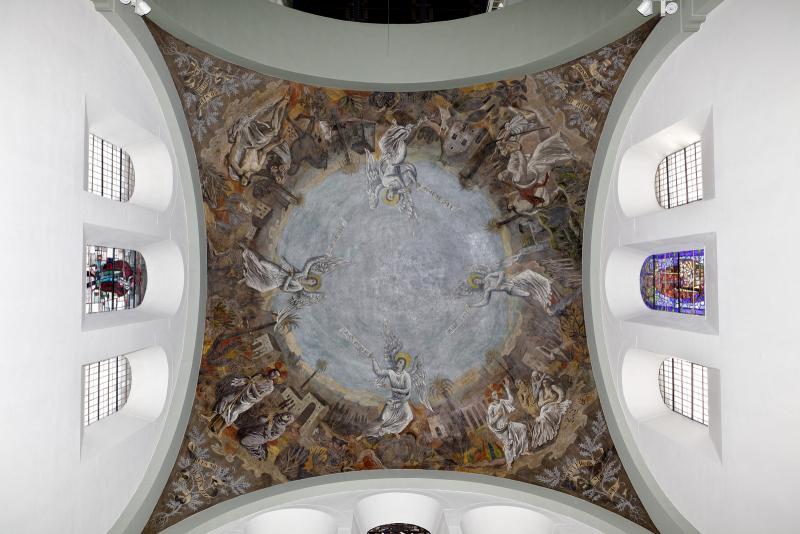 - Gewelfschilderingen van Charles Eyck, overgewit tijdens de vernieuwing van 1969, behalve die in het transept.