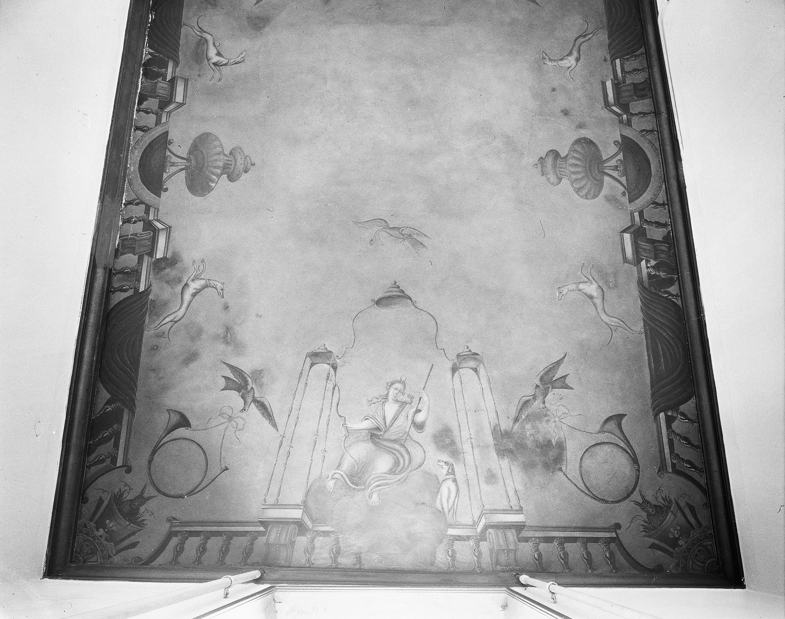 - Plafondschildering met Diana. Zwaar overschilderd.