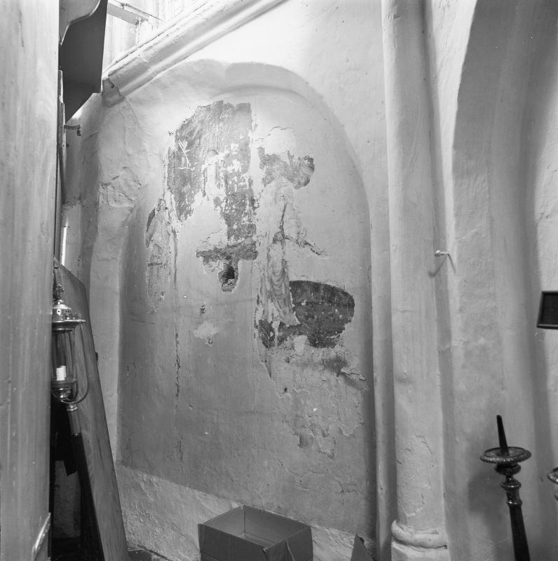 - Achter het hoofdaltaar (?) bevindt zich een gedichte tabernakelnis met een muurschildering van wierookzwaaiende engelen