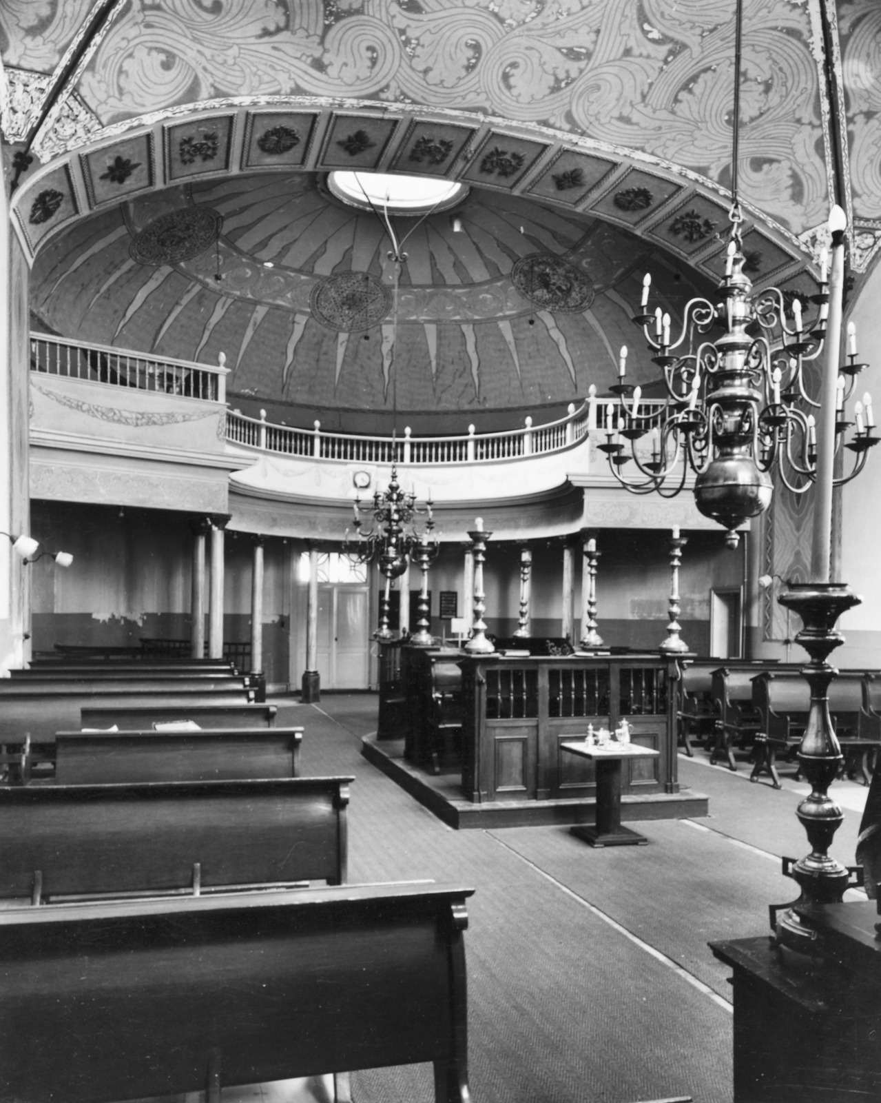 - Voor de restauratie van 1964-1967 was het interieur beschilderd met ranken, materiaalimitaties en stralen bij de koepel. Niet meer te zien, overgewit.