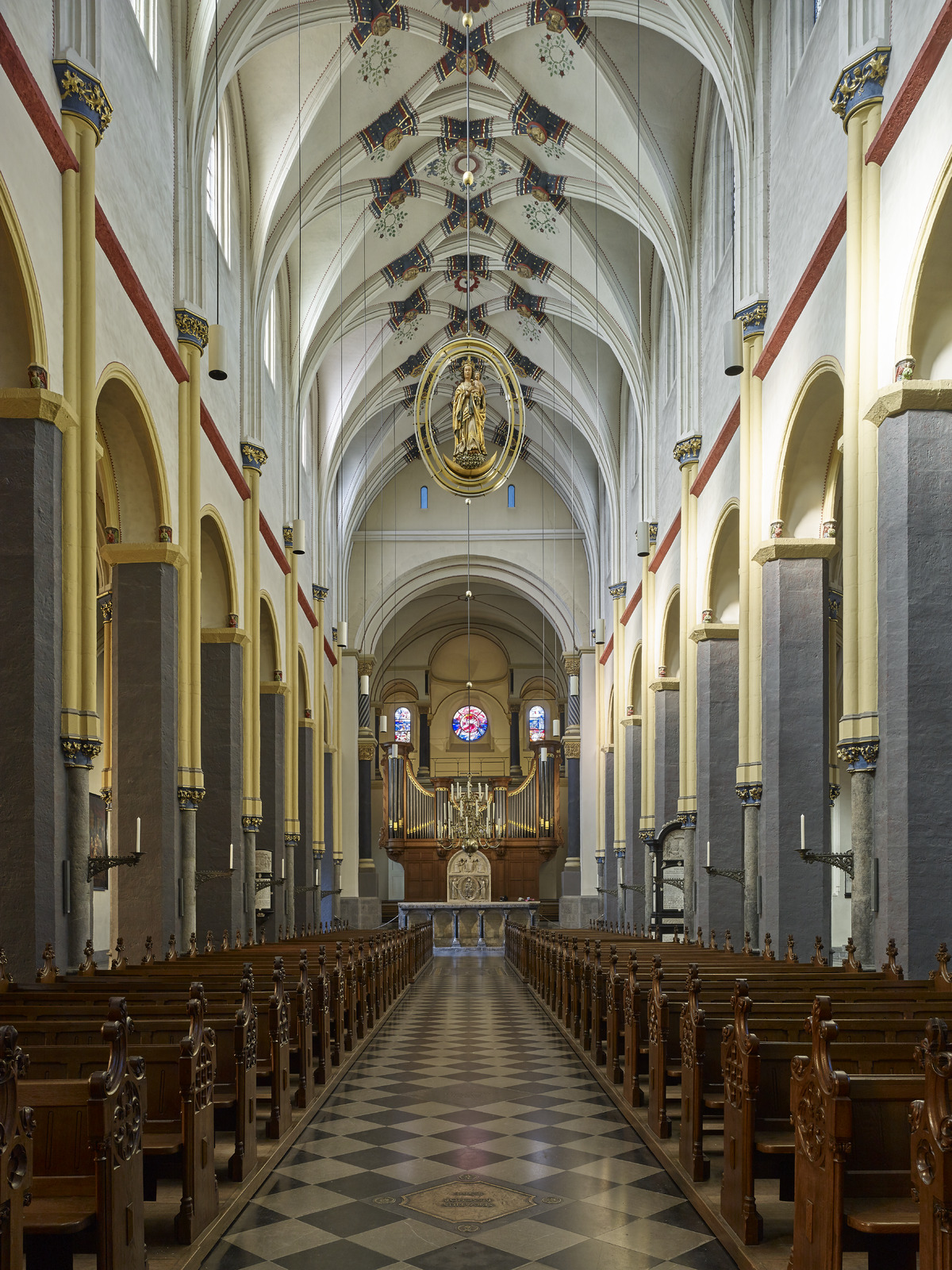 "Bij de laatste restauratie zijn de 19de-eeuwse neogotische schilderingen verwijderd en de 15de-eeuwse decoratieve gewelfschilderingen hersteld..”