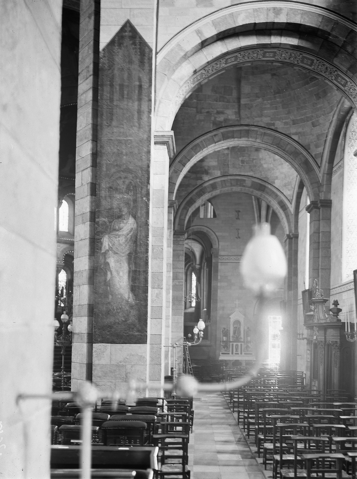 1902 te voorschijn gekomen, tegen de westkant van de derde hoofdpijler zuidzijde schip: Sint Catharina van Alexandrië. Onder gotische architectuur staat de heilige, driekwart naar links gewend, gekleed in een blauw kleed en witte mantel, haar attribuut het rad rechts. Links haar zwaard en aan haar voeten het hoofd van keizer Maniminus II.