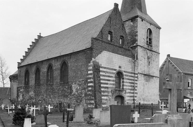 11de-eeuwse noordmuur en koor enkele 11de-eeuwse muurdelen van maaskeien; rond 1250 grotendeels in mergelsteen opgetrokken en sporenkap bewaard; toren rond 1450; eerste kwart 16de eeuw zuidbeuk en nieuwe westgevel; 1651 beide beuken verhoogd en bakstenen trapgevels aan koorzijde
